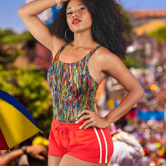 Brazil Bonfim Ribbons Swimsuit • Salvador Bahia Lucky Fitinhas Polyester+Spandex One-Piece Bikini For Carnival Party And Beach Wear