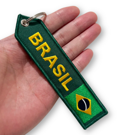 Brazil National Flag Arrow Shaped Embroidery Tag Keychain For Car Keys Backpack • Brasil Both Sides Embroidered Keyring Gift For Brazilian