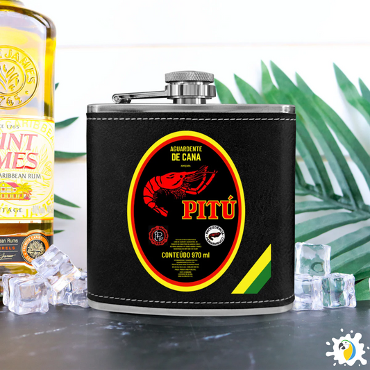 Cachaça Brazilian Spirit Drink Leather Flask • Pitú Aguardente De Cana Stainless Steel Alcoholic Drinks Portable Bottle