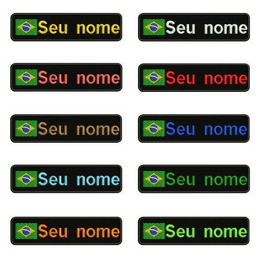 Brazilian Flag Custom Name Patch 10x2.5cm • Personal Brazil Name Tag Iron-On Hook-Loop Embroidery Stripe Armband Badge For DIY Customization