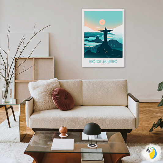 Rio De Janeiro Vintage Travel Poster • Premium Canvas Green, Blue, and Orange Brazilian Wall Art Print Of Rio, Brazil, South America