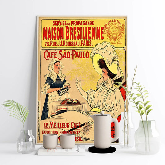 Sao Paulo Cafe Vintage French Ad Poster • French Retro Brazilian Coffee Canvas Print • Old-Style France Paris Brasil Café Advertising Art