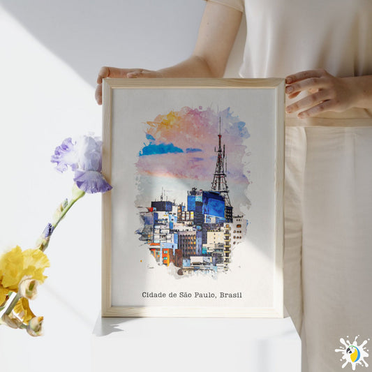 Sao Paulo City Watercolor Painting Premium Canvas Print