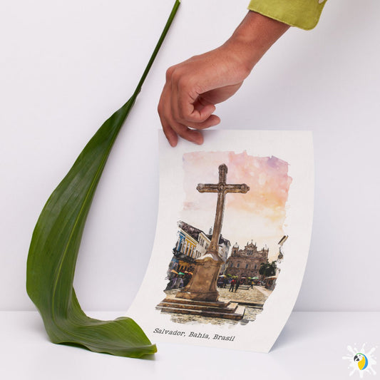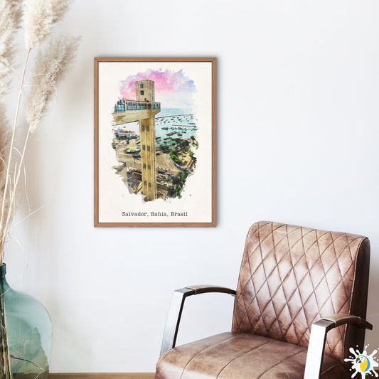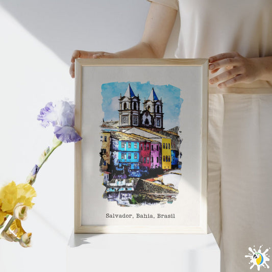 Pelourinho Salvador Bahia Watercolor Painting • Brazilian City Premium Canvas Print