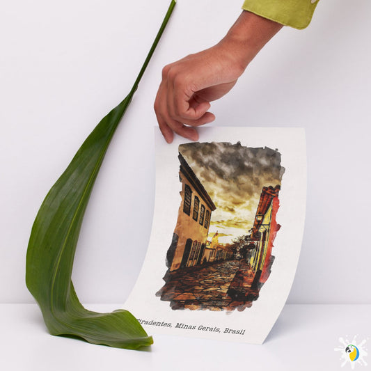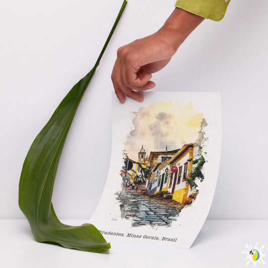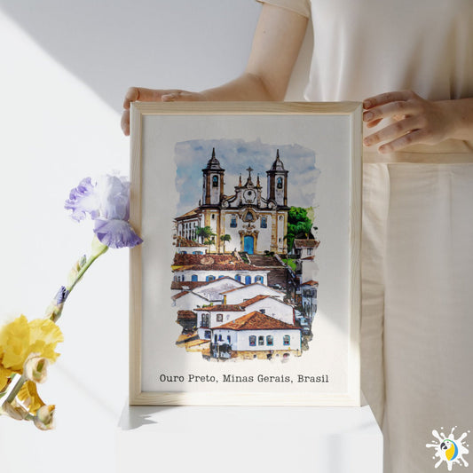 Minas Gerais Brasil Premium Canvas Print • Tiradentes MG Watercolor Painting