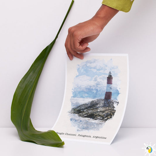 Beagle Channel Watercolor Painting • Patagonia Landscape Premium Canvas Print