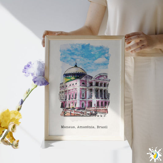 Manaus Brazil Watercolor Painting • Brazilian Landmark Premium Canvas Print