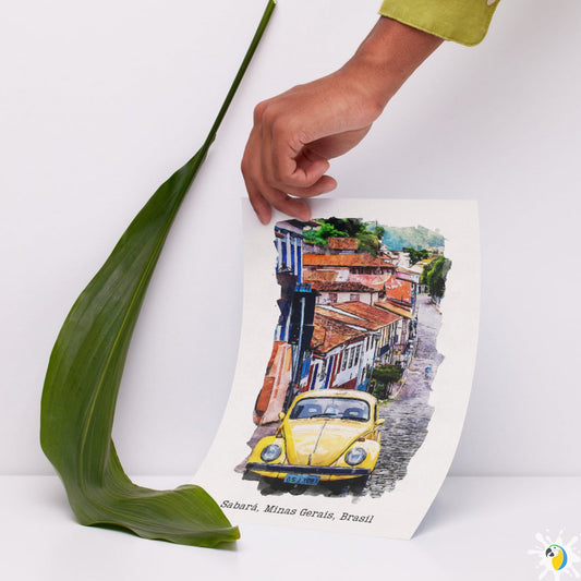 Sabará MG Brazil Watercolor Painting • Brazilian Village Premium Canvas Print