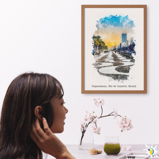 Copacabana Promenade Premium Canvas Print • Rio De Janeiro Watercolor Painting • Brazil Travel Poster • Brazilian City Trip Souvenir Gift