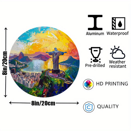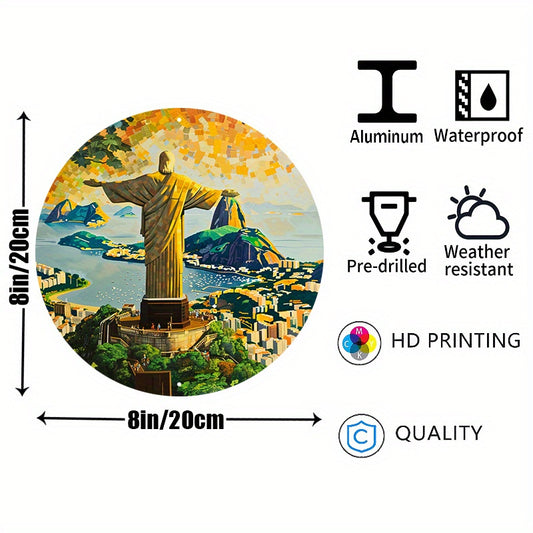 Christ The Redeemer Round Metal Print • Cityscape Wonder Rio De Janeiro Tin Sign • Brazil Wall Art Decor Gift For Brazilian