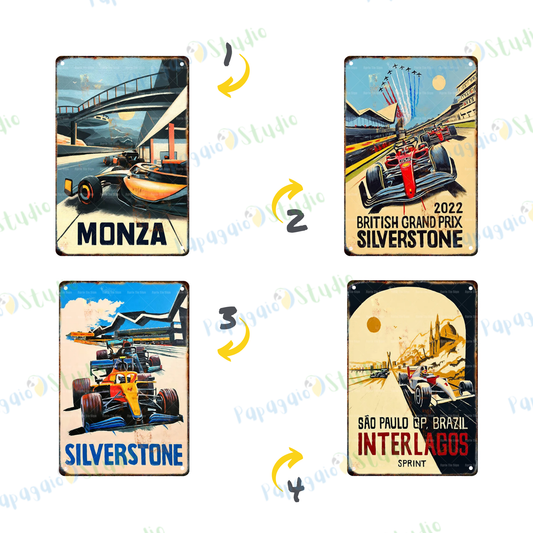 Vintage F1 Circuit Tin Sign Collection • Retro Formula 1 Cities Metal Print • Racing Sports Tinplate Decor • Grand Prix Wall Art Gift