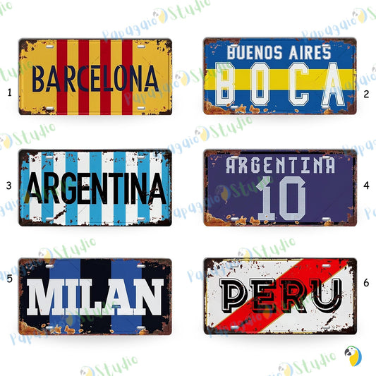 Vintage Football City License Plate Tin Sign • Metal Print Gift For Soccer Fan • Sports Decorative Plaque