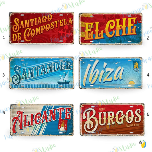 Vintage Spanish Cities Tin Signs • Retro Metal License Plates