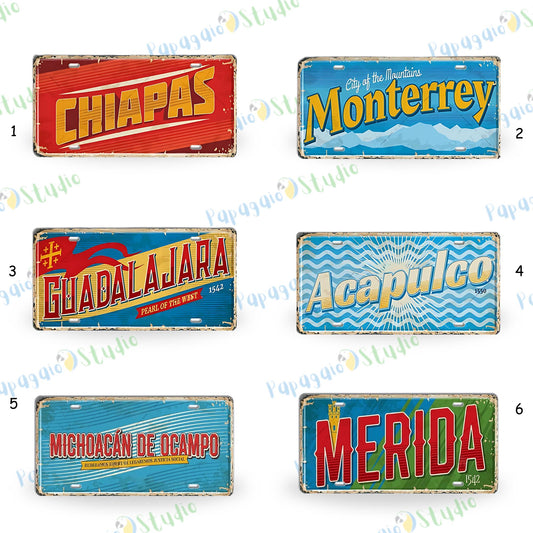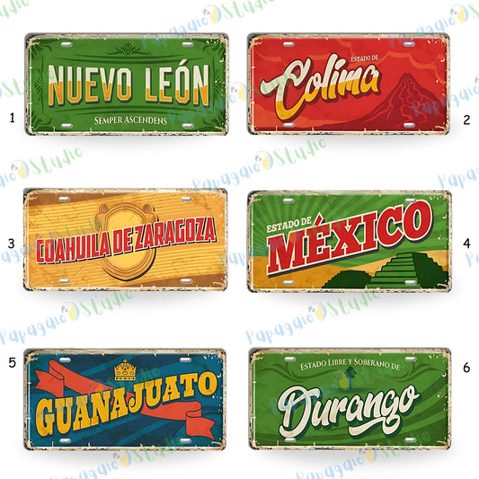 Mexican States Vintage Tin Signs • Retro Mexico License Plates