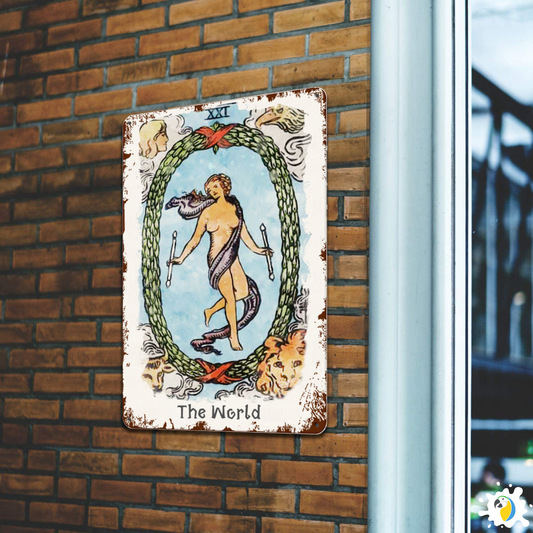 Tin Sign Of The World Tarot Card • Major Arcana 21 Vintage Tinplate Painting