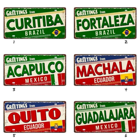 Colombia Mexico Brazil City Tin Sign • Latin America Tourist Souvenir Metal Plaque • Shabby Chic Home Decor Wall Art Gift For Latino