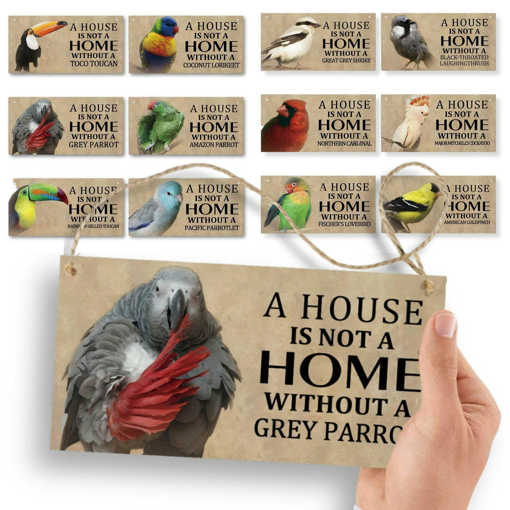 Home Bird Sign Wood Hanging • Toucan Amazon Parrot Cockatiel Canary Wooden Plaque For Porch Garden Decor • Feathered Pet Lover Wall Hanging
