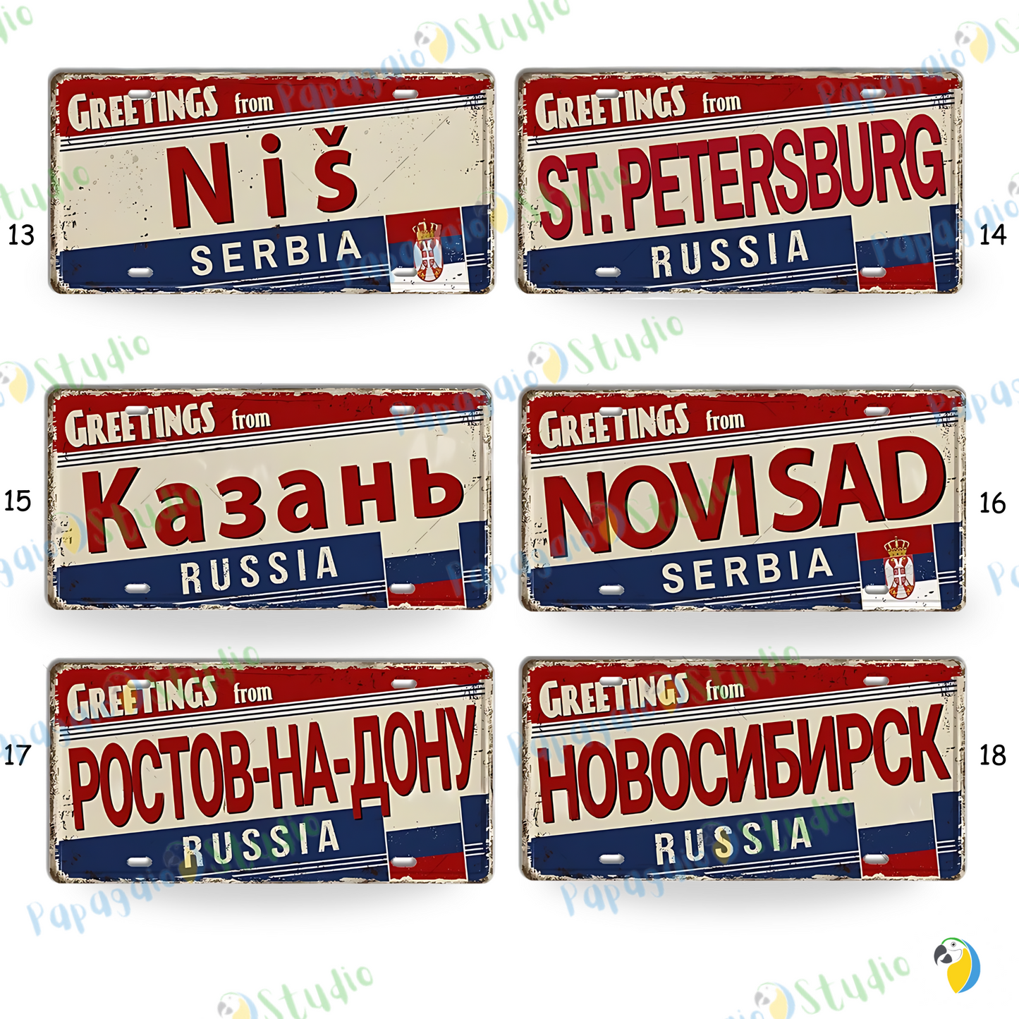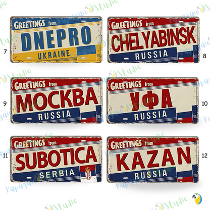 Each sign features a unique design with Cyrillic writing, making them perfect for adding a touch of nostalgia and culture to any space. Ideal as a gift for travel enthusiasts, history buffs, or anyone who appreciates retro decor.